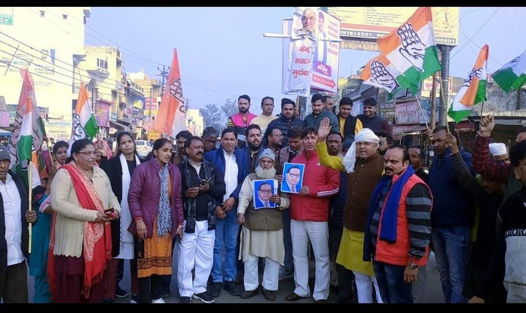 अमित शाह के बयान का विरोध लक्सर में कांग्रेस कार्यकर्ताओं ने प्रदर्शन कर फूंका पुतला;इस्तीफे की मांग की