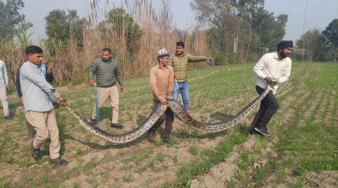 लक्सर वन विभाग की टीम के द्वारा विशालकाय अजगर को रेस्क्यू किया गया तब जाकर किसनो ने राहत के साथ ली है वन रेंज अधिकारी यशपाल सिंह राठौर ने बताया कि ग्रामीणों के द्वारा सूचना दी गई थी कि अकोदा कला गांव मे एक विशालकाय अजगर देखने को मिला है जो किसी बड़ी घटना को भी अंजाम दे सकता है उससे ग्रामीणों में दहशत बनी हुई है उन्होंने बताया सूचना पर वन विभाग की टीम को वहां पर भेजा गया जिसमें सुमित कुमार सैनी वैभव सिंगल गुंरजट सिंह भोपाल सिंह वनकर्मी की टीम गठित की गई, गठित टीम के द्वारा घंटा भरकड़ी मशक्कत के बाद जान पर खेलकर उस विशाल का अजगर को पकड़ लिया गया,। जिसकी लंबाई लगभग 18 फुट और जिसका वजन लगभग 90 किलो आका गया है उन्होंने बताया उस अजगर को पकड़ कर पथरी जंगल में सुरक्षित स्थान पर छोड़ दिया गया तब जाकर किसानों ने राहत की सांस ली और वन विभाग की टीम का आभार व्यक्त किया
