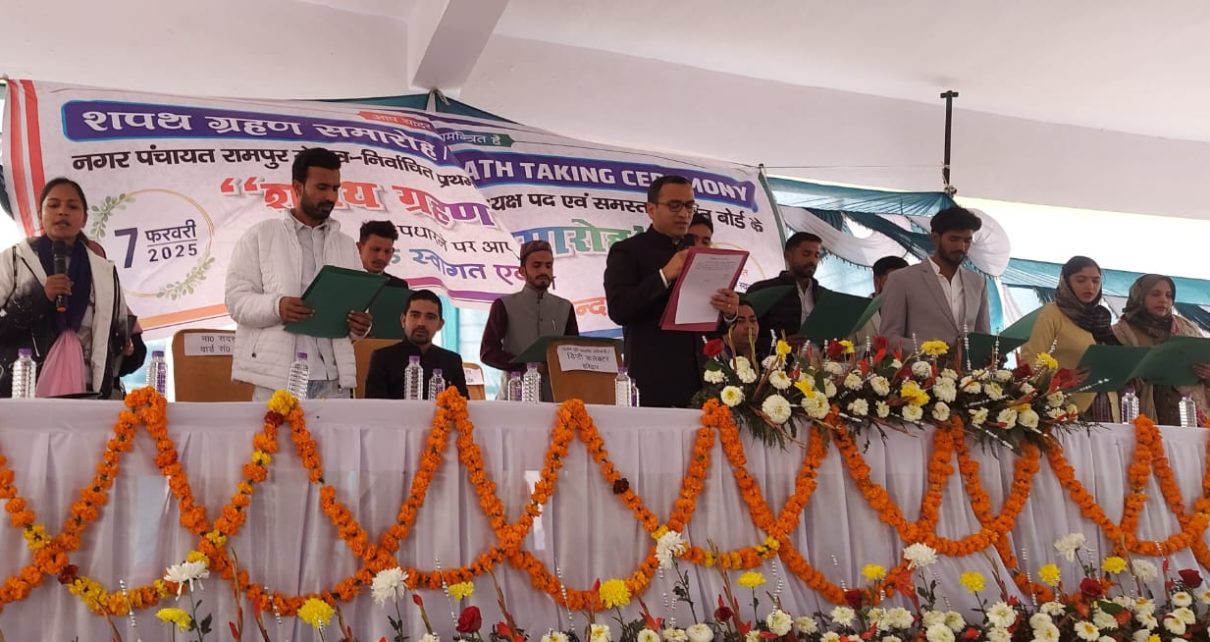 रुड़की।नवगठित रामपुर नगर पंचायत के निर्वाचित हुए प्रथम अध्यक्ष एवं सभासदों का शपथ ग्रहण समारोह नवीन मंडी स्थल पर हुआ,जिसमें ज्वाइंट मजिस्ट्रेट आशीष कुमार मिश्रा ने नवनिर्वाचित अध्यक्ष प्रवेश सुल्तान को पद और गोपनीयता की शपथ दिलाई।शपथ ग्रहण करने के पश्चात ज्वाइंट मजिस्ट्रेट आशीष कुमार मिश्रा ने उन्हें बधाई दी।शपथ ग्रहण समारोह में उपस्थित लोगों का आभार प्रकट करते हुए नवनिर्वाचित अध्यक्ष प्रवेश सुल्तान ने कहा कि जो सहयोग क्षेत्र की जनता ने उन्हें दिया है,उसका ऋण वह जनता की सेवा कर उतारेंगे।उनके दरवाजे सभी के लिए दिन-रात खुले रहेंगे।नगर पंचायत रामपुर का चहुंमुखी विकास किया जाएगा तथा सबको साथ लेकर चलना उनका प्रयास रहेगा।क्षेत्र की जनता की उम्मीदों पर खरा उतरने का भरसक प्रयास किया जाएगा।शपथ ग्रहण करने के पश्चात अध्यक्ष प्रवेज सुल्तान ने सभी सभासदों का फूल मालाएं पहनाकर सम्मान किया।शपथ ग्रहण में आजाद समाज पार्टी के प्रदेश अध्यक्ष महक सिंह तथा रुड़की के पूर्व मेयर यशपाल राणा भी पहुंचे,जिन्होंने प्रवेज सुल्तान को अपनी शुभकामनाएं दी।इस अवसर पर भीम आर्मी के प्रदेश अध्यक्ष अमरीश कपिल,आदित्य कुमार,मोहम्मद वसीम,राजेंद्र लाम्बा,सुमित कटारिया,मोफिक अहमद समाजसेवी,ताहिर अहमद,अली अहमद,राव मोहम्मद इस्लाम,मुमताज उर्फ लूसा,वरिष्ठ समाजसेवी मोहम्मद मेहरबान,दौलत राम, अफजाल अहमद,रिफासत अली,मोहम्मद जावेद, मुबारक अली,नईम अहमद,रविकांत तेजस,काशिफ सुल्तान आदि मुख्य रूप से मौजूद रहे।