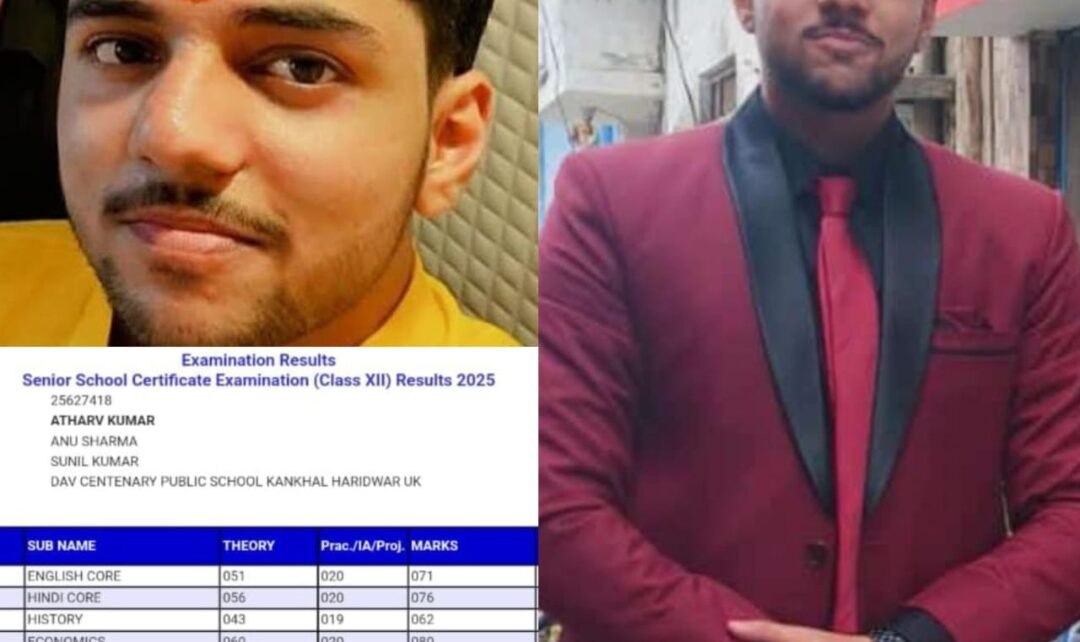 हरिद्वार जी हा आप को बता दे अथर्व कुमार ने अपने स्कूल और परिवार का नाम रोशन किया है। इस उपलब्धि के साथ छात्र ने अपनी मेहनत और समर्पण का प्रदर्शन किया है। छात्र ने अपनी सफलता का श्रेय अपने माता-पिता और शिक्षकों को देता हूं, जिन्होंने मुझे हमेशा प्रोत्साहित किया और सही दिशा में मार्गदर्शन किया।” आगे की योजना के बारे में छात्र अब अपने भविष्य की योजनाओं पर ध्यान केंद्रित कर रहा है, जिसमें उच्च शिक्षा और करियर के अवसर शामिल हैं। इनके पिता श्री सुनील कुमार विद्यालय श्री मारवाड़ कन्या पाठशाला इण्टर कालेज रूड़की छावनी में प्रधान लिपिक के पद पर कार्यरत हैं और उनकी माता श्रीमती अनु शर्मा विद्यालय श्री मारवाड़ कन्या पाठशाला इण्टर कालेज रूड़की छावनी में प्रवक्ता गृह विज्ञान के पद पर कार्यरत हैं परिजनों और विद्यालय प्रबंधन ने मिठाई खिलाकर अथर्व को इस कामयाबी पर बधाई दी और उनके उज्जवल भविष्य की कामना की मीडिया के सवालों पर अथर्व के पिता श्री सुनील कुमार और मां अनु शर्मा ने बताया कि सीबीएसई इंटरमीडिएट बोर्ड परीक्षा में बेटे ने अच्छे अंक प्राप्त किए हैं और बेटे की इस कामयाबी पर पूरा परिवार खुशी में डूबा हुआ है