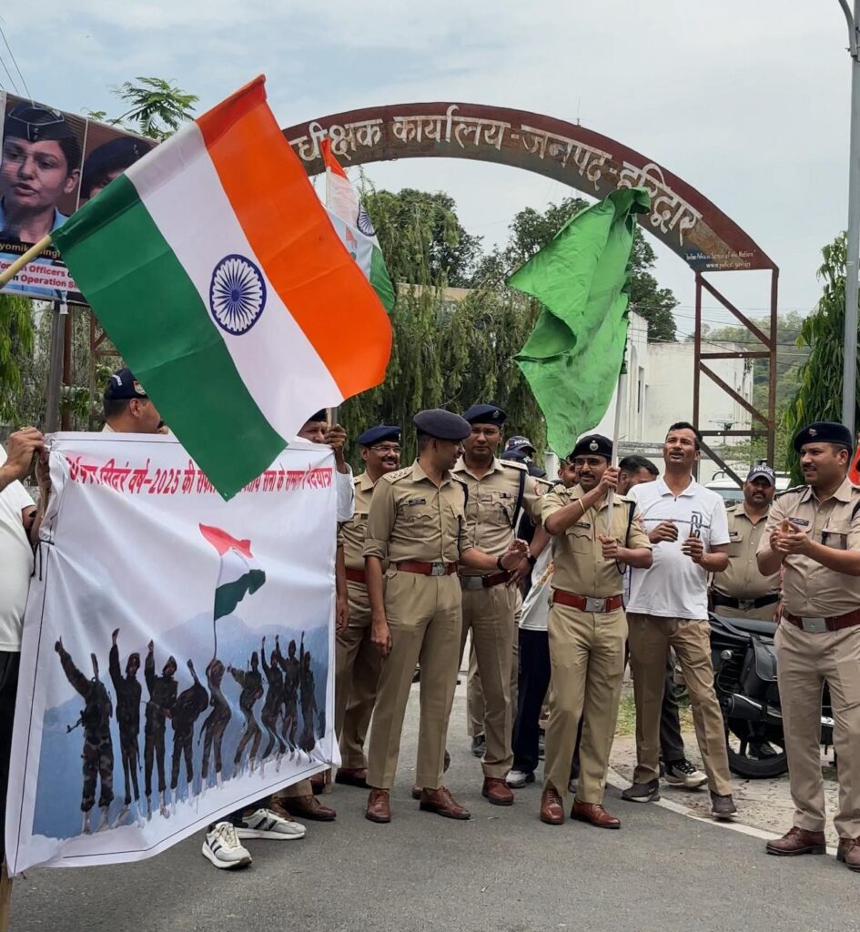 रैली की शुरुआत एसएसपी कार्यालय, रोशनाबाद से हुई और यह रानीपुर मोड़ तक निकाली गई। पुलिस और आमजन का जोश देखते ही बनता था। चारों ओर “भारत माता की जय” और “वंदे मातरम्” के नारे गूंज रहे थे, जिसने माहौल को राष्ट्रभक्ति से सराबोर कर दिया।