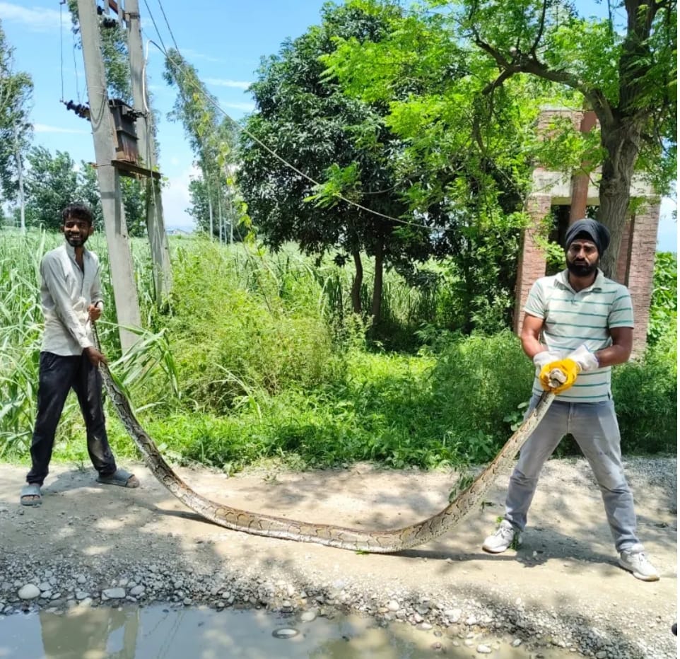 टांडा-महतौली में खेतों से निकला 13 फीट लंबा अजगर, बना दहशत का माहौल,वन विभाग ने किया सुरक्षित रेस्क्यू।