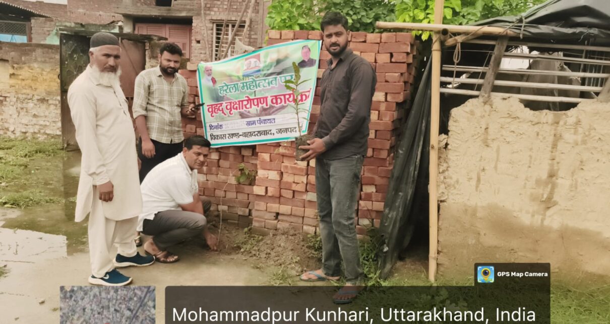 हरेला पर्व के पावन अवसर पर मोहम्मदपुर कुन्हारी गांव में पर्यावरण संरक्षण का संदेश देते हुए ग्राम प्रधान इस्तेखार अली द्वारा पौधारोपण कार्यक्रम का आयोजन किया गया। ग्राम पंचायत परिसर एवं आसपास के क्षेत्रों में विभिन्न प्रकार के छायादार एवं फलदार पौधे रोपे गए।