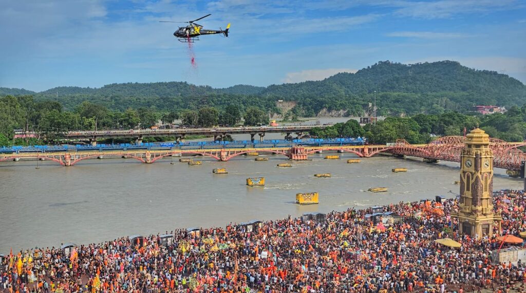 हरिद्वारा आये कांवडीयों एवं शिव भक्तों पर हैलीकॉफ्टर के माध्यम से किया पुष्प वर्षा।