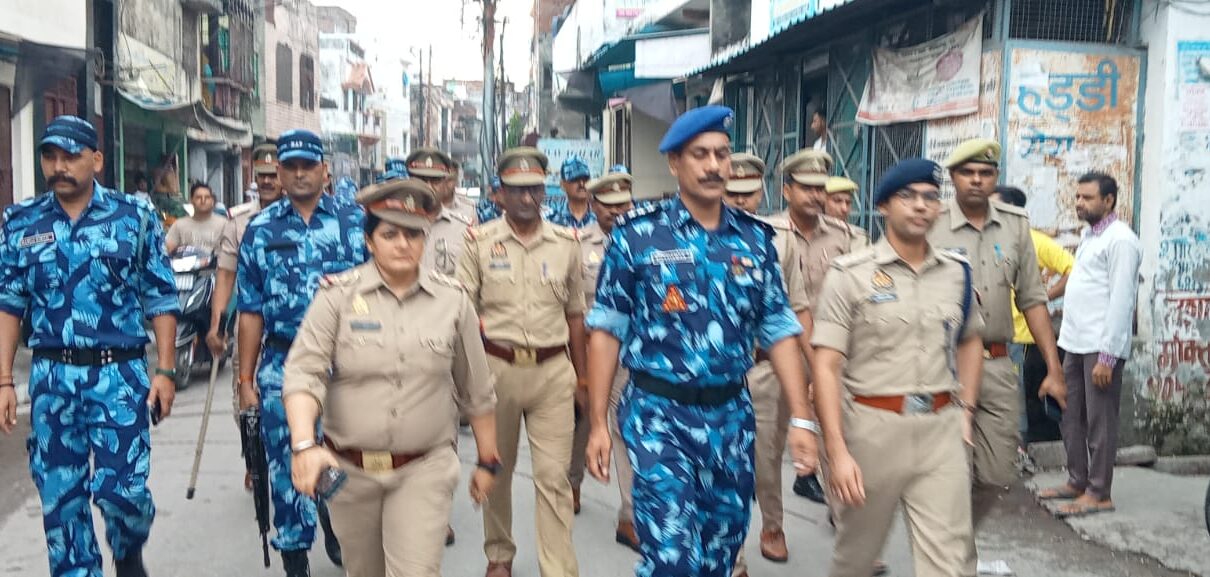 भयमुक्त वातावरण बनाने हेतु रैपिड एक्शन फ़ोर्स व पुलिस बल ने क्षेत्र में किया फ्लेगमार्च
