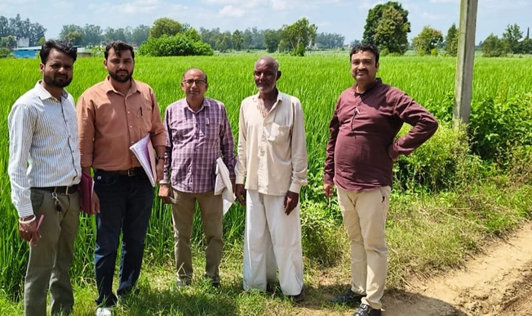 लंढौरा में राजस्व टीम ने सरकारी भूमियों की पैमाइश कर निशानदेही की।