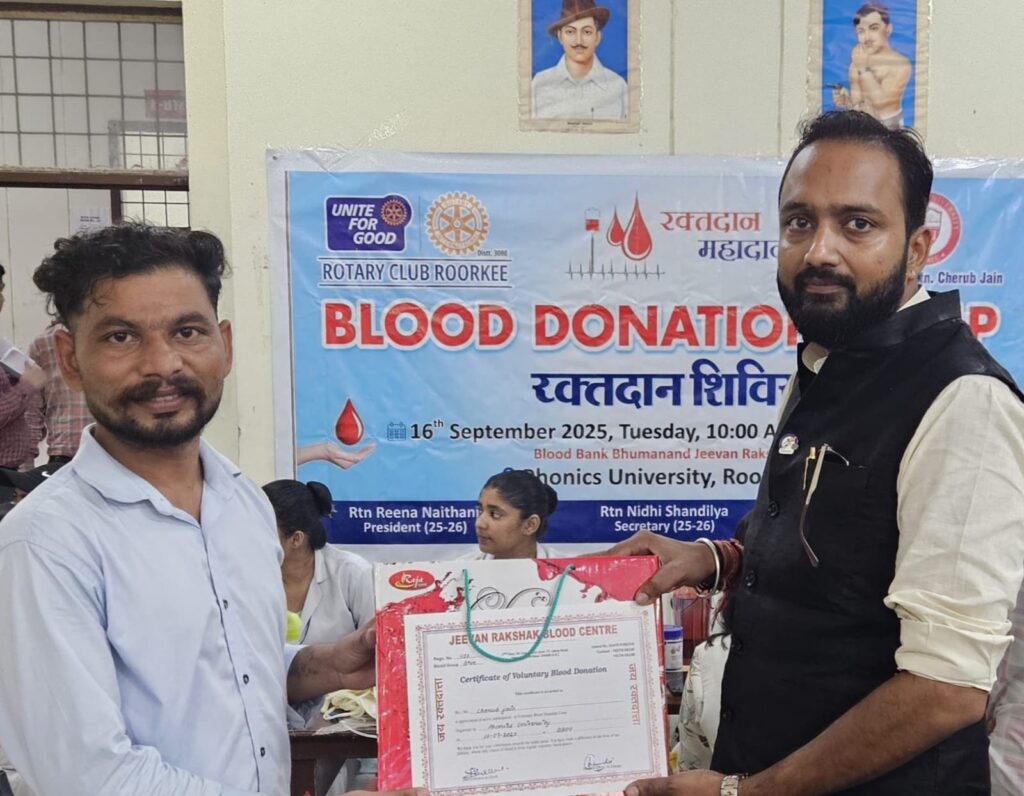 फोनिक्स यूनिवर्सिटी में रक्तदाताओं ने नब्बे यूनिट रक्त किया एकत्रित,रोटरी क्लब रुड़की सामाजिक व जनहित कार्यों में अग्रणी,ई०चैरब जैन