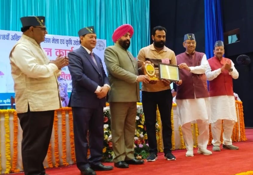 रुड़की।पंतनगर में आयोजित किया गया 118-वें कृषि कुम्भ किसान मेले एवं कृषि उद्योग प्रदर्शनी में वर्मी कंपोस्ट खाद का उत्पादन कर किसानों को जैविक खेती के प्रति जागरूक कर रहे हैं निशांत चौहान को यह सम्मान प्रदान किया गया है।हरिद्वार जनपद के कलालहटी गाँव निवासी किसान निशांत चौहान को राज्यपाल और कृषि मंत्री ने पंतनगर में आयोजित 118-वें कृषि कुम्भ किसान मेले एवं कृषि उद्योग प्रदर्शनी कार्यक्रम में सम्मानित किया।निशांत चौहान को यह सम्मान जैविक एवं प्राकृतिक गोआधारित खेती प्रगतिशील किसान के रुप में मिला है।वर्मी कंपोस्ट खाद का उत्पादन कर किसानों को जैविक खेती के प्रति जागरूक कर रहे हैं चौहान पिछले कई वर्षों से लगातार जैविक खेती को बढ़ावा देने में मेहनत कर रहे हैं,इसके तहत उन्हाेंंने वर्मी कंपोस्ट खाद बनाना शुरू किया।शुरुआत में थोड़ा कठिन लगा पर अपने दृढ़ विश्वास से वर्मी कंपोस्ट खाद बनाने के सफल हुए।धीरे-धीरे उन्होंने अपनी खेती को जैविक किया।निशांत चौहान अब वर्मी कंपोस्ट खाद का उत्पादन आसपास के क्षेत्रों में कर रहे हैं और ग्रामीणों को जैविक खेती के बारे में भी जागरूक कर रहे हैं।संदल सिंह आर्गैनिक फार्म की 2023 में की शुरुआत कलालहटी निवासी निशांत चौहान ने अपने दादाजी के नाम पर 2023 में संदल सिंह आर्गैनिक फार्म की।गौ आधारित जैविक खेती खेती करने का रास्ता अपनाया।देसी गायों से मिलने वाले गोबर और गोमूत्र से जैविक उत्पाद बना रहे हैं।निशांत चौहान ने गाँव के अन्य किसानों को भी प्रोत्साहित किया है और वे उनकी खेती देखकर पञ्चगव्य आधारित जैविक खेती की ओर उन्मुख भी हो रहे हैं।डेयरी पालन कर अब शुद्ध देसी गाय का घी खूब भा रहा है,निशांत को आर्डर पर आर्डर मिल रहें हैं।निशांत चौहान डेयरी पालन कर शुद्ध घी लोगों को उपलब्ध करा रहे हैं।निशांत ने बताया कि उनकी डेयरी में देसी गाय है। गाय के दूध के साथ-साथ घी लोगों को खूब भा रहा है।शुद्ध घी की ज्यादा डिमांड हो रही है। आर्डर पर आर्डर मिल रहे हैं।निशांत चौहान ने बताया कि धीरे धीरे शुद्ध देसी घी का उत्पादन बढ़ाया जाएगा और अच्छी अच्छी देसी नस्ल की गाय खरीद कर वह सेवा के साथ-साथ बिजनेस भी बढ़ेगा।