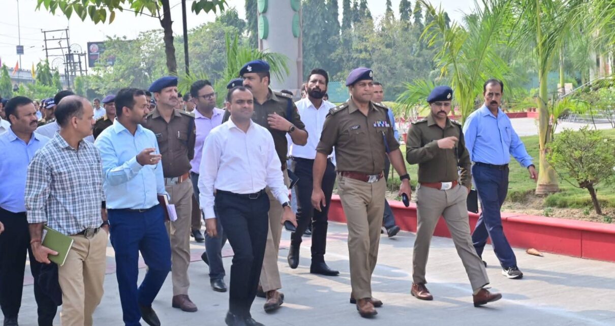 हरिद्वार। पतंजलि योगपीठ के विश्वविधालय में 02 नवम्बर को राष्ट्रपति द्रौपदी मुर्मू के संभावित दौरे को लेकर जिलाधिकारी मयूर दीक्षित तथा वरिष्ठ पुलिस अधीक्षक प्रमेन्द्र सिंह डोबाल ने प्रशासनिक अमले के साथ पहुॅचकर चल रही तैयारियों का स्थलीय निरीक्षण किया। उन्होंने निर्देशित करते हुए कहा कि ड्यूटी के दौरान प्रोटोकॉल का पूरा अनुपालन किया जाए। प्रोटोकॉल में किसी भी प्रकार की चूक न हो। उन्होंने निर्देशित करते हुए कहा कि 1 नवंबर को संपूर्ण कार्यक्रम की पूरी रिहर्सल की जाए। रिहर्सल के दौरान यदि कोई कमी सामने आए तो उसे तत्काल दूर किया जाए। सभी कार्य मानकों के अनुरूप ही किए जाएं। निरीक्षण के दौरान अपर जिलाधिकारी फिंचाराम चौहान, जॉइंट मजिस्ट्रेट रुड़की दीपक रामचंद्र सेठ, एसपी देहात शेखर सुयाल, एसपी क्राइम जितेंद्र मेहरा, एसपी सिटी अभय प्रताप सिंह,नगर आयुक्त रुड़की राकेश चंद्र तिवारी, हरिद्वार एसडीएम जितेंद्र कुमार,डिप्टी कलेक्ट्रेट देवेंद्र सिंह नेगी, ईई यूपीसीएल दीपक सैनी, एसीएमओ डॉ अनिल वर्मा, रजिस्ट्रार निर्विकार सहित संबंधित विभागों के अधिकारी एवं कर्मचारी उपस्थित थे।