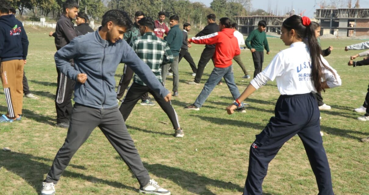 आत्मरक्षा कार्यशाला के तीसरे दिन एडवांस डिफेंस तकनीकों का अभ्यास जोड़ी बनाकर आत्मरक्षा करने की विधियों से विद्यार्थियों में टीम भावना और आत्मविश्वास का विकास उत्तराखंड संस्कृत विश्वविद्यालय के महिला प्रकोष्ठ द्वारा आयोजित साप्ताहिक आत्मरक्षा कार्यशाला के तीसरे दिन प्रशिक्षण कार्यक्रम अत्यंत उत्साहपूर्ण एवं प्रभावशाली रहा। आज के सत्र में विद्यार्थियों को एडवांस डिफेंस तकनीकों का व्यावहारिक प्रशिक्षण दिया गया, जिसमें जोड़ी बनाकर आत्मरक्षा करने की तकनीकों पर विशेष ध्यान केंद्रित किया गया।हरिद्वार के अनुभवी आत्मरक्षा प्रशिक्षक श्री रविशंकर राय के कुशल मार्गदर्शन में छात्र-छात्राओं को यह सिखाया गया कि आपात परिस्थितियों में किस प्रकार आपसी समन्वय, सतर्कता और त्वरित प्रतिक्रिया के माध्यम से स्वयं तथा अपने साथी की सुरक्षा सुनिश्चित की जा सकती है। जोड़ी बनाकर किए गए अभ्यासों से विद्यार्थियों में न केवल शारीरिक दक्षता बल्कि टीम भावना और आपसी विश्वास का भी विकास हुआ।कार्यशाला के दौरान शारीरिक प्रशिक्षण के साथ-साथ मानसिक दृढ़ता, अनुशासन, आत्मसंयम एवं सजगता पर भी विशेष बल दिया गया। विद्यार्थियों ने पूरे उत्साह और एकाग्रता के साथ प्रशिक्षण में भाग लिया, जिससे परिसर में सकारात्मक ऊर्जा का संचार देखने को मिला।कार्यशाला के आगामी दिनों में आत्मरक्षा से जुड़ी और भी उन्नत एवं व्यवहारिक तकनीकों का प्रशिक्षण दिया जाएगा।नोडल अधिकारी डॉ श्वेता अवस्थी ने बताया कि महिला प्रकोष्ठ का निरंतर प्रयास है कि विश्वविद्यालय परिसर को सुरक्षित, संवेदनशील और सशक्तिकरण-केन्द्रित बनाया जाए। आगामी सत्रों में और भी व्यावहारिक तथा उन्नत आत्मरक्षा तकनीकों का प्रशिक्षण दिया जाएगा, जिससे छात्राओं का आत्मविश्वास और अधिक सुदृढ़ हो सके।प्रकोष्ठ की सचिव मीनाक्षी सिंह रावत ने कहा कि कार्यशाला के प्रत्येक सत्र को इस प्रकार संरचित किया गया है कि छात्राएँ व्यावहारिक परिस्थितियों में स्वयं की रक्षा करना सीख सकें। महिला प्रकोष्ठ भविष्य में भी इस प्रकार के प्रशिक्षण कार्यक्रमों के माध्यम से छात्राओं के सर्वांगीण विकास और सुरक्षित शैक्षणिक वातावरण के निर्माण हेतु निरंतर प्रयासरत रहेगा।कराटे कोच श्री करूणा निधि पांडेय ने कहा कि कराटे केवल एक मार्शल आर्ट नहीं, बल्कि आत्मनियंत्रण, अनुशासन और मानसिक संतुलन का अभ्यास है। नियमित प्रशिक्षण से छात्राएँ न केवल शारीरिक रूप से सशक्त बनती हैं, बल्कि उनमें साहस, धैर्य और आत्मविश्वास भी निरंतर बढ़ता है।