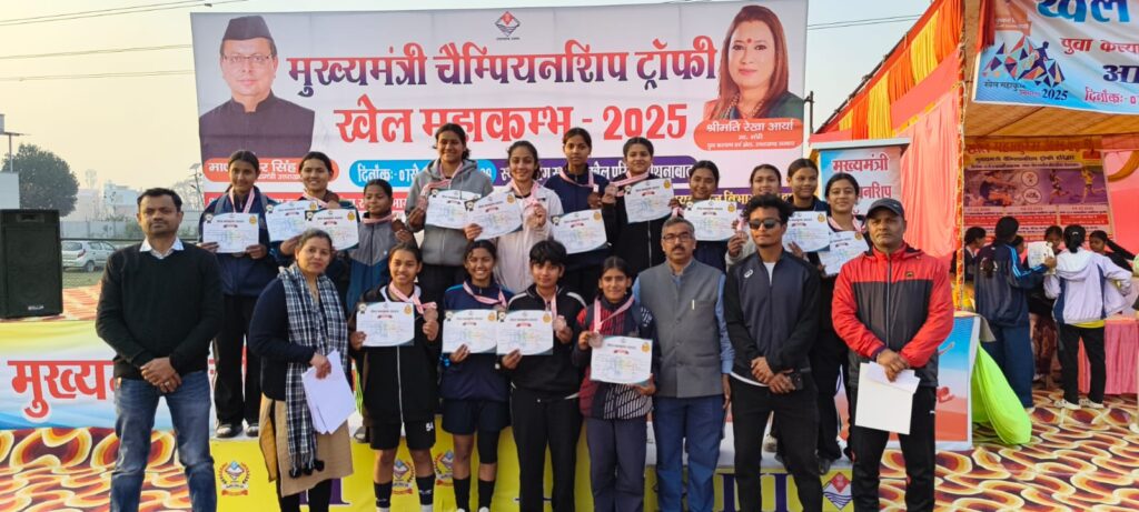 मुख्यमंत्री चैम्पियनशिप ट्राॅफी (राज्य स्तरीय प्रतियोगिता) खेल महाकुम्भ 2025 का दिनांक 09.02.2026 को फुटबाॅल खेलविधा के परिणाम निम्नानुसार रहे- संसदीय क्षेत्र आयुवर्ग खेलविधा प्राप्त स्थाननैनीताल अण्ड़र 14 बालिक फुटबाॅल प्रथमपौड़ी गढ़वाल द्वितीयहरिद्वार लोकसभा तृतीयटिहरी गढ़वाल अण्ड़र 19 बालिका फुटबाॅल प्रथमहरिद्वार राज्यसभा द्वितीयदेहरादून तृतीय इस अवसर पर शिक्षा विभाग के खेल शिक्षकों, उपक्रीड़ाधिकारी श्री प्रदीप कुमार एवं प्रभारी मुख्यमंत्री चैम्पियनशिप ट्राॅफी श्री मुकेश कुमार भट्ट के द्वारा विजेता प्रतिभागियों को पुरस्कार वितरित किए गए।