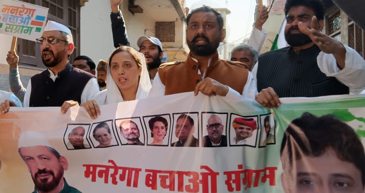 रुड़की।केंद्र सरकार द्वारा मनरेगा योजना का नाम बदलने के विरुद्ध कांग्रेसियों द्वारा मनरेगा बचाओ संग्राम पदयात्रा का आयोजन विधानसभा देवबंद में किया गया,साथ ही मांगे पूरी न होने पर आगामी 17 फरवरी को विधानसभा का घेराव किया जाने के लिए भी चेतावनी दी गई।कांग्रेस जिला अध्यक्ष संदीप राणा के नेतृत्व में कांग्रेस नेत्री डॉ०शाजिया जीनत नाज एडवोकेट व कांग्रेसी नेता राहत खलील ने मनरेगा बचाओ संग्राम पदयात्रा को नगर के विभिन्न मोहल्लों से निकाल यात्रा में शामिल कांग्रेसियों नेताओं ने लोगों को मनरेगा योजना के बारे में जागरूक किया।कांग्रेस जिलाध्यक्ष संदीप राणा ने कहा कि केंद्र की मोदी सरकार मनरेगा योजना का नाम बदलकर इसका अस्तित्व ही समाप्त करना चाहती है।उन्होंने कहा कि इसके विरोध में आज से शुरू मनरेगा संग्राम यात्रा लगातार जारी रहेगी।सरकार से योजना का नाम बदलने के वजह मनरेगा में कार्य करने वाले मजदूरों की मजदूरी बढ़ाने की भी मांग की गई।कहा कि हमारी मांगे नहीं मानी गई तो आगामी 17 फरवरी को विधानसभा का घेराव किया जाएगा।मनरेगा बचाओ संग्राम पदयात्रा के दौरान सपना सोम,राजपाल कर्नवाल,नानू कश्यप,धर्म सिंह,शाह आलम, युसूफ खलील,नितिन शर्मा,मुकेश,राज कश्यप,अब्दुल्ला कुरैशी,औसाफ मेंबर,अनस बचीटी,अकरम सिद्दीकी,नबील मसूदी सहित बड़ी संख्या में कांग्रेसी कार्यकर्ता मौजूद रहे।