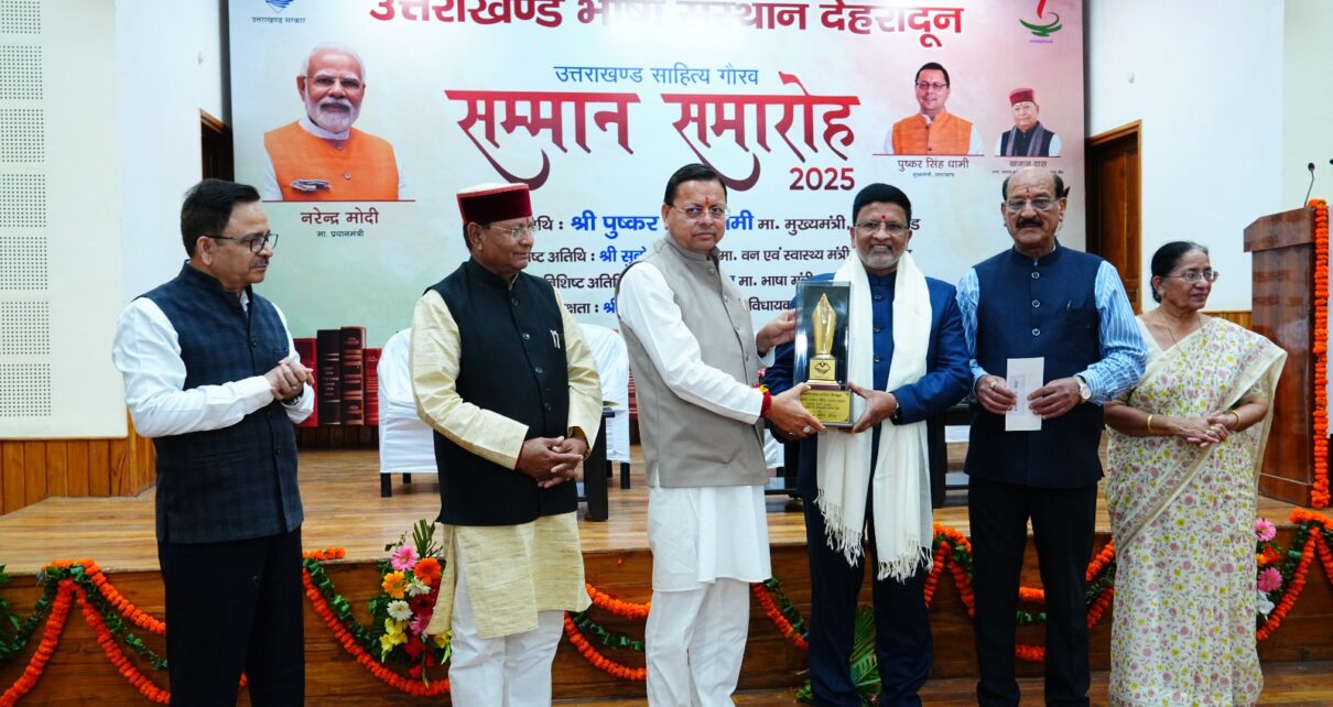 उत्तराखंड संस्कृत विश्वविद्यालय हरिद्वार के आधुनिक ज्ञान विज्ञान विभाग के सीनियर प्रोफेसर डॉ. दिनेश चमोला शैलेश को उत्तराखंड भाषा संस्थान द्वारा प्रदान किए जाने वाला बहु प्रतिष्ठित पुरस्कार उत्तराखंड साहित्य गौरव सम्मान (मंगलेश डबराल पुरस्कार2025) से 30 मार्च को मुख्यमंत्री आवास पर आयोजित कार्यक्रम में सम्मानित किया गया।विभिन्न विधाओं में सात (7) दर्जन से अधिक पुस्तक लिखने वाले चर्चित साहित्य अकादमी के बाल साहित्य पुरस्कार से सम्मानित हिंदी साहित्यकार, प्रो. दिनेश चमोला ‘शैलेश’ को बाल साहित्य के क्षेत्र में दीर्घ कालीन सृजन, सेवा एवं उत्कृष्ट साहित्यिक योगदान के लिए ‘ उत्तराखंड साहित्य गौरव सम्मान (मंगलेश डबराल पुरस्कार)2025’ से प्रदेश के माननीय मुख्यमंत्री, पुष्कर सिंह धामी, वन मंत्री, सुबोध उनियाल तथा भाषा मंत्री, खजान दास द्वारा स्मृति चिह्न, अंग वस्त्र, सम्मान पत्र तथा 1 लाख इक्यावन हजार की धनराशि देकर सम्मानित किया गया । गौरतलब है यह सम्मान उत्तराखंड के ऐसे कालजयी कवि, लेखक को दिया जाता है जिनकी रचनाएं जनमानस में निरंतर मानवीय मूल्यों को उदात्त करती हैं । उत्तराखंड के ऐसे तपस्वी साहित्यकार के दीर्घकालीन बाल साहित्य सृजन, सेवा और साहित्यिक योगदान के लिए उत्तराखंड भाषा संस्थान द्वारा यह श्रेष्ठ सम्मान प्रदान किया जाता है । प्रोफेसर चमोला विगत साढ़े चार दशकों से देश की असंख्य पत्र-पत्रिकाओं में अपने विविधमुखी लेखन के लिए जाने जाते रहे हैं । । इससे पूर्व प्रो.चमोला देश की साहित्य अकादमी का बाल साहित्य पुरस्कार प्राप्त करने वाले अपने समय के सबसे कम उम्र के साहित्यकार रहे हैं । 14 जनवरी, 1964 को उत्तराखंड के रुद्रप्रयाग जनपद के ग्राम कौशलपुर में स्वर्गीय पं. चिंतामणि चमोला ज्योतिषी एवं माहेश्वरी देवी चमोला के घर में जन्मे प्रो. चमोला ने शिक्षा में प्राप्त कीर्तिमानों यथा एम.ए. अंग्रेजी, प्रभाकर; एम. ए. हिंदी (स्वर्ण पदक प्राप्त); पीएच-डी. तथा डी.लिट्. के साथ-साथ साहित्य के क्षेत्र में भी राष्ट्रव्यापी पहचान निर्मित की है। अभी तक प्रो. चमोला ने उपन्यास, कहानी, दोहा, कविता, एकांकी, बाल साहित्य, समीक्षा, शब्दकोश, अनुवाद, व्यंग्य, लघुकथा, साक्षात्कार, स्तंभ लेखन के साथ-साथ एवं साहित्य की विविध विधाओं में सात दर्जन से अधिक पुस्तकों में लेखन किया है । आपके व्यापक मौलिक साहित्य देश के अनेक विश्वविद्यालयों में पीएच-डी.तथा एम.फिल. स्तरीय कई शोध कार्य संपन्न हो चुके हैं तथा अनेक विश्वविद्यालयों में वर्तमान में चल रहे हैं । अभी तक अपनी उत्कृष्ट साहित्यिक सेवाओं के लिए आपको देश के विभिन्न प्रतिष्ठित संस्थाओं द्वारा ‘सहित्यश्री साहित्य भास्कर’, ‘विद्यासागर’, ‘युवा साहित्यकार स