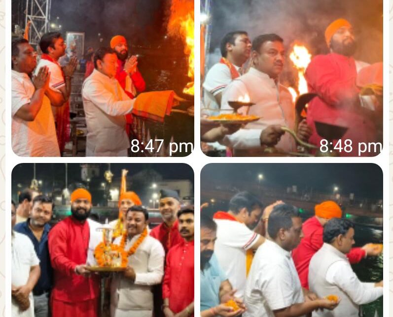 रुड़की।नगर स्थित गंगा घाट पर पंडित रोहित वैदिक द्वारा पूजा-अर्चना एवं गंगा आरती की गई,जिसमें पूर्व मेयर गौरव गोयल ने भी पूजा-अर्चना कर आरती में भाग लिया।नगर की सुख-समृद्धि तथा राष्ट्र के कल्याण की विशेष कामना की गई,वहीं उत्तराखंड कांग्रेस कमेटी के प्रदेश अध्यक्ष गणेश गोदियाल के 58-वें जन्म दिवस पर उनके स्वस्थ जीवन एवं दीर्घायु की कामना भी की गई।पूर्व मेयर गौरव गोयल कांग्रेस प्रदेश अध्यक्ष गणेश गोदियाल के जन्मदिवस पर अपने दर्जनों समर्थकों के साथ गंगा घाट पर पहुंचे,जहां उन्होंने पूजा अर्चना की तथा आरती में भाग लिया। कांग्रेस अध्यक्ष के स्वस्थ एवं मंगल जीवन तथा दीर्घायु की कामना करते हुए पूर्व मेयर गौरव गोयल ने नगर की सेवा करने का संकल्प लिया।उन्होंने कहा कि हालांकि वह लंबे समय नगर की सेवा कर रहे है तथा भविष्य में भी करते रहेंगे।इस अवसर पर पंडित सचिन शास्त्री,पंडित चंद्र मोहन,पंडित ध्रुव कौशिक,पंडित लवकुश,पंडित कार्तिक मिश्रा के अलावा टोनी गंगाभक्त,विभोर अग्रवाल,रजनीश गुप्ता,वरुण गोयल,अनूप शर्मा,ऋषभ वर्मा,तुषार गोयल,वरुण अग्रवाल तथा संजय मित्तल आदि प्रमुख रूप से आरती में मौजूद रहे।