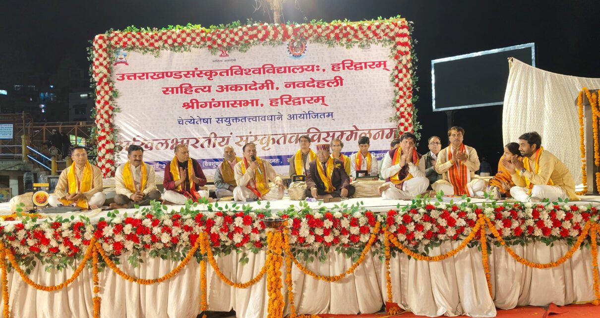 संस्कृत कवियों के विमर्श का मंच बना हर की पैड़ी l उत्तराखंड संस्कृत विश्वविद्यालय ,हरिद्वार की पहल पर हरकी पैड़ी में पहली बार आयोजित हुए संस्कृत कवि सम्मेलन में देशभर से आये हुए कवियों ने देर रात तक श्रोताओं को बांधे रखा।