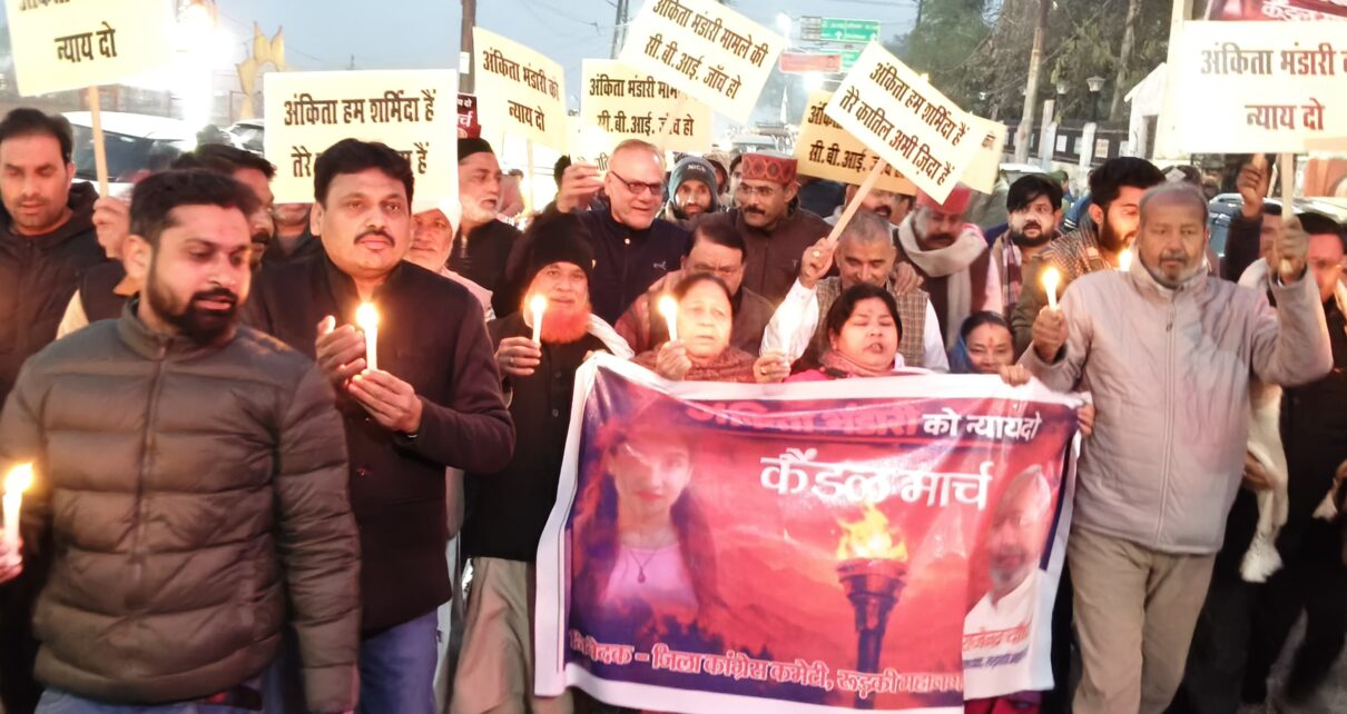 रुड़की महानगर कांग्रेस कमेटी के नेतृत्व में बड़ी संख्या में कांग्रेसियों ने अंकिता भंडारी केस मामले को लेकर निकाला कैंडल मार्च