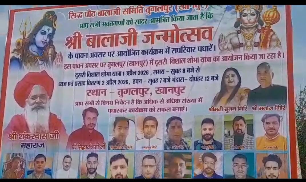 खानपुर में बालाजी जन्मोत्सव धूमधाम से मनाया, निकली भव्य शोभा यात्रा खानपुर। क्षेत्र में बालाजी जन्मोत्सव बड़े ही हर्ष और उल्लास के साथ मनाया गया।