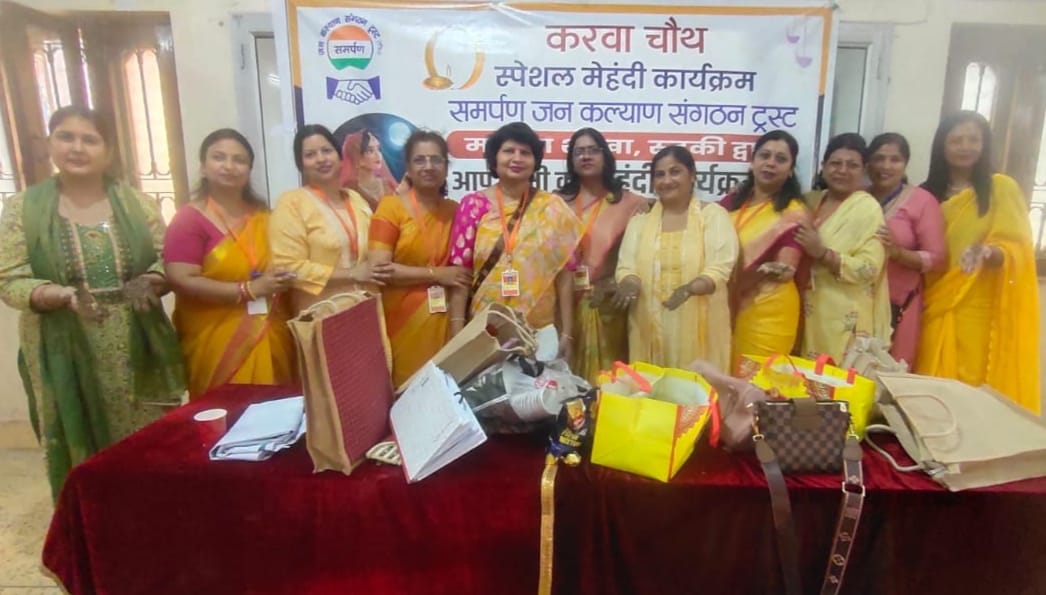समर्पण जन कल्याण संगठन ट्रस्ट,महिला विंग ने करवा चौथ पर्व की पूर्व संध्या पर किया विशेष मेहंदी कार्यक्रम का आयोजन